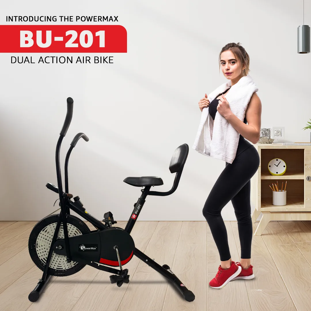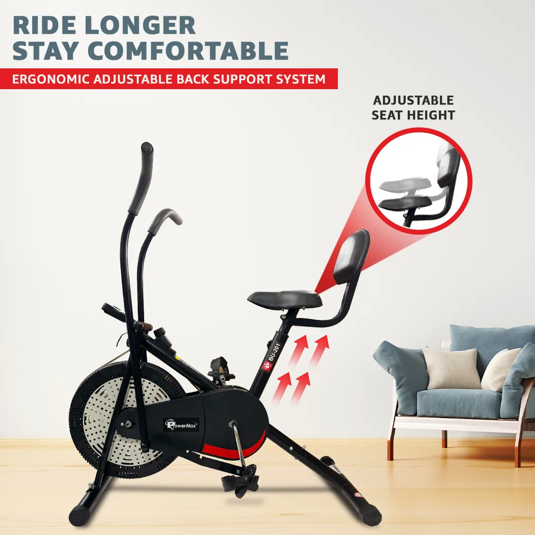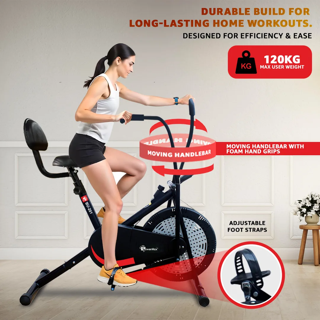 PowerMax Fitess BU-201 Dual Action Air Bike with Back Support System will let you experience a complete cardio routine without leaving the comfort of your home.